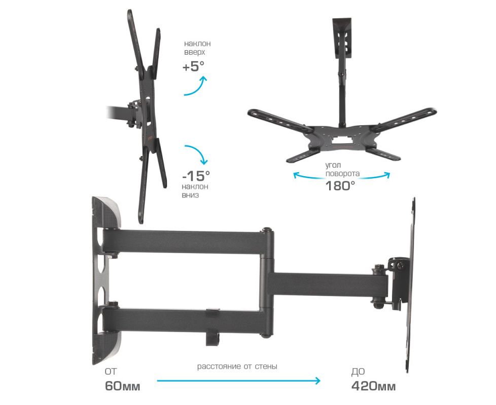 ԱպրանքանիշArm media Arm media Տեղադրման տեսակ Պատի Կախիչի տեսակ Թեքվող-պտտվող Անկյունագիծ 26-55 " Առավելագույն բեռ 30 կգ Թեքման անկյուն 3 -10 ° Պտտման անկյուն 180 ° VESA ստանդարտ 100/200/300/400x400 մմ