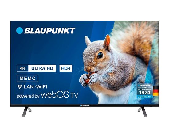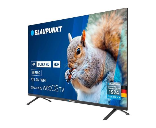 Ապրանքանիշ: Blaupunkt; Գույն: սև; Էկրան Անկյունագիծ: 43; Էկրան Կետային խտություն: 3840x2160; Smart հնարավորություն Օպերացիոն համակարգ: webOS Smart TV; Էկրան Էկրանի տեսակ: LED; Թվային ընդունիչ: DVB-T/T2/C/S/S2; Ձայնային համակարգ Ձայնի հզորություն: 16; Ինտերֆեյս USB: 2; Ինտերֆեյս HDMI: 3; Գույն,չափեր և քաշ Չափերն առանց տակդիր Լ*Բ*Խ : 95,8 x 55,8 x 7,2; Գույն,չափեր և քաշ Քաշը տակդիրով : 8.9; Գույն,չափեր և քաշ Քաշն առանց տակդիր: 6.9; Անալոգային ընդունիչ: PAL/SECAM/H.265; Ինտերֆեյս Bluetooth: առկա է; Smart հնարավորություն Smart TV : Առկա է; Smart հնարավորություն Wi-Fi: IEEE 802.11 a/b/g/n/ac; Ինտերֆեյս CI Slot: առկա է; Գույն,չափեր և քաշ VESA մոնտաժի ստանդարտ: 400x200; Էկրան Էկրանի անկյունագծի չափ: 109; Հեռակառավարման համակարգ Հեռակառավարման վահանակ: Այո