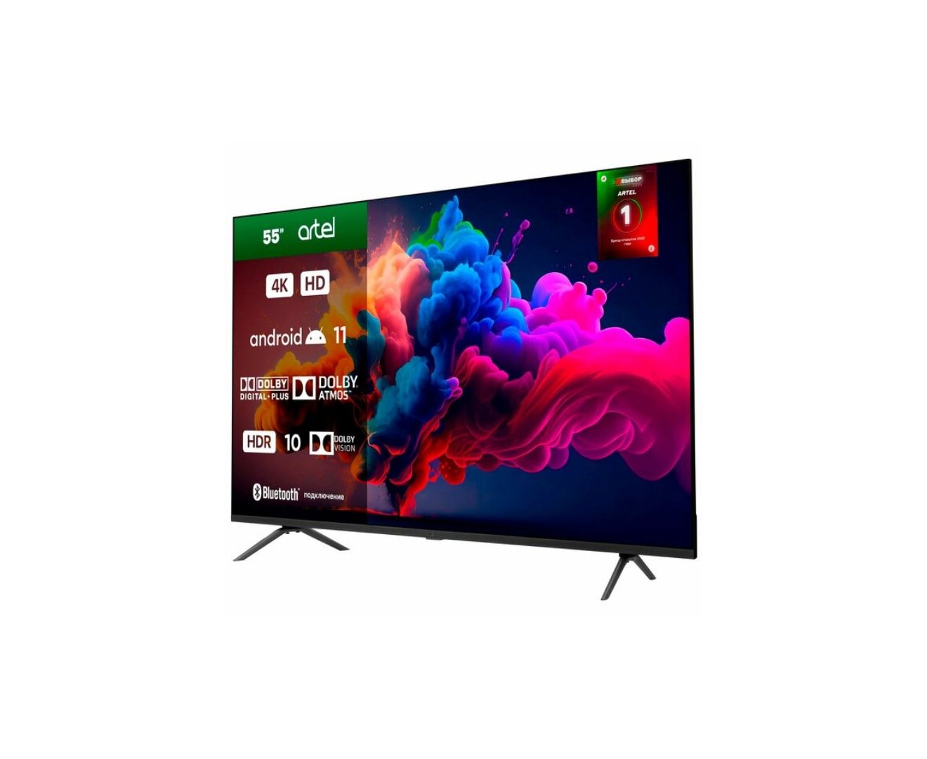 Մուգ մոխրագույն Artel A55LU8500 հեռուստացույցը 55 դյույմանոց մոդել է՝ 3840x2160 պիքսել թույլատրությամբ և 16:9 ձևաչափով։ Էկրանը հիմնված է TFT տեխնոլոգիայի վրա, որը բնութագրվում է արձագանքման կարճ ժամանակով և գերազանց պայծառությամբ. դրա շնորհիվ դինամիկ տեսարաններ դիտելու ընթացքում աղավաղումները դառնում են աննկատ: HDR10 տեխնոլոգիայի աջակցությունն օգնում է բարելավել նկարի մանրամասները ամենաթեթև և մութ տեսարաններում: Հեռուստացույցն աջակցում է 4K Ultra HD-ի ընդլայնմանը, ինչը թույլ է տալիս մեծ էկրանին դիտել անցյալ տարիների ֆիլմեր և սերիալներ: Նկարի որակը բարելավելու համար կա աղմուկի նվազեցման թվային համակարգ: