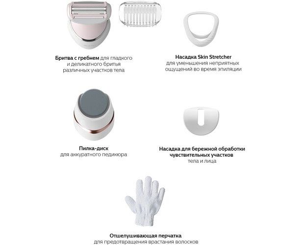 Philips Series 8000 էպիլյատորներն ապահովում են արդյունավետ, բայց նուրբ մազահեռացում: Ընդամենը 10 րոպե, և դուք կարող եք վայելել հարթ ոտքերը: Բուժեք ինքներդ ձեզ Էպիլյատորի լրացուցիչ հնարավորությունները հատուկ պարագաների ամբողջական փաթեթի շնորհիվ: