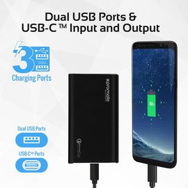 ԱպրանքանիշPromate Մարտկոցի հզորություն10000 mAh Երկու սարքի միաժամանակյա լիցքավորումԱյո Միակցիչmicro USB կամ USB Type-C