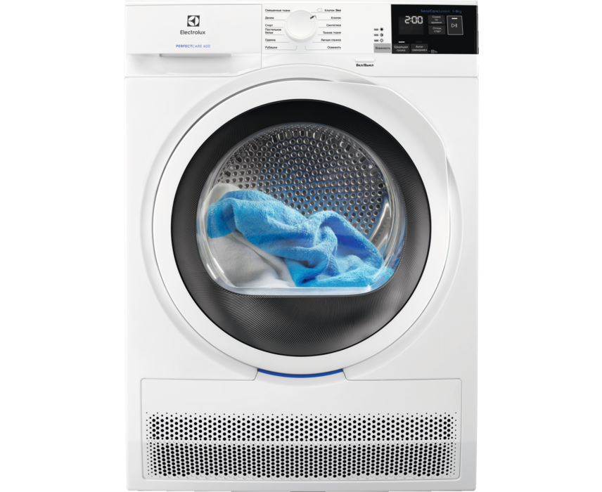 Electrolux PerfectCare 600 – ը առջևի ընդարձակ չորացման չորանոց է: Այս մոդելը իրականացնում է գույքային տեխնոլոգիա, որը որոշում է խոնավության մակարդակը և կարգավորում է շահագործման ժամանակը այնպես, որ հագուստը պաշտպանի գերտաքացումից: Էլեկտրոնային-մեխանիկական կառավարման համակարգի միջոցով դուք կարող եք արագ ընտրել համապատասխան ռեժիմը և սահմանել օպտիմալ պարամետրեր: