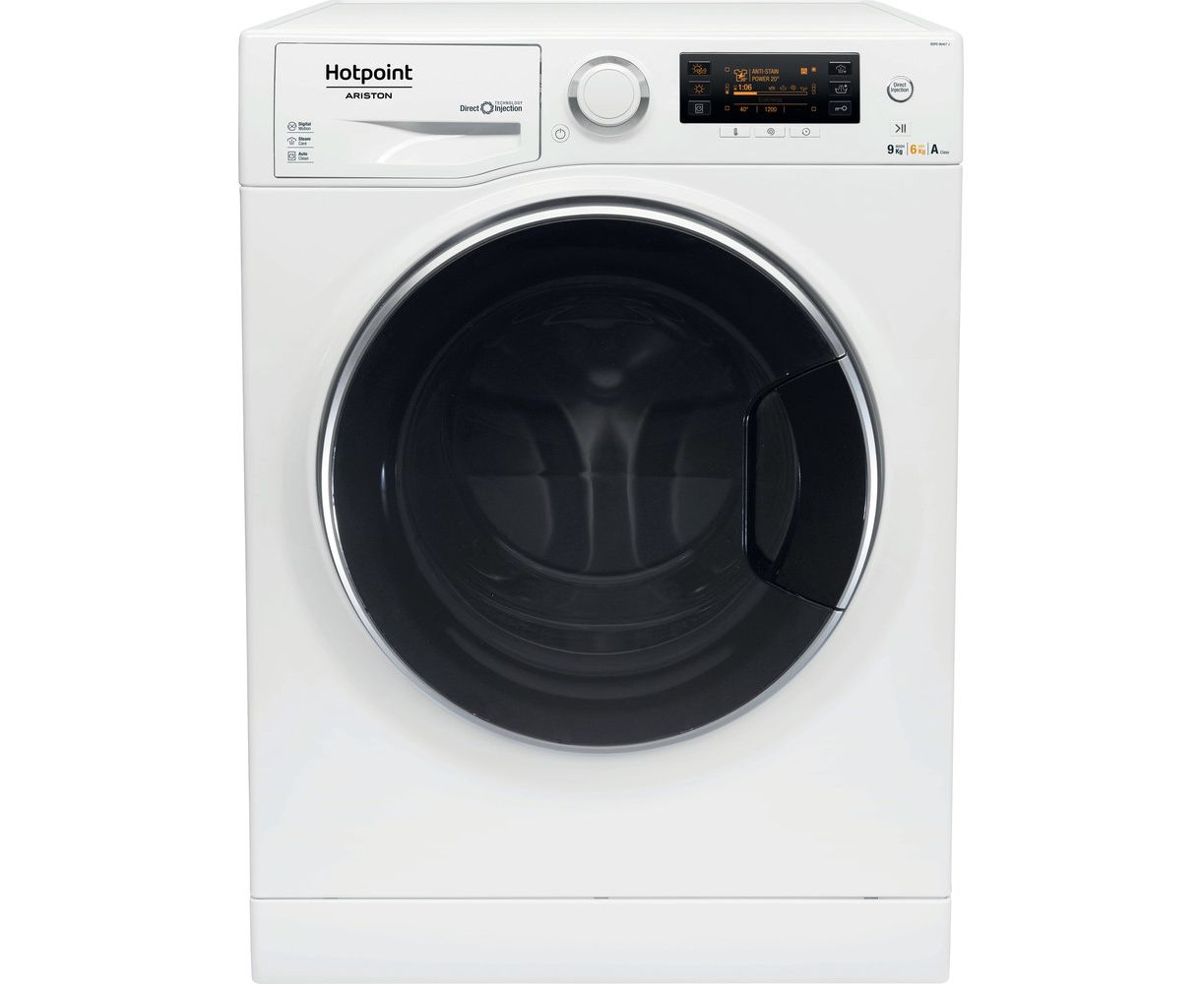 Hotpoint-Ariston RDPD 96407 JD EU լվացքի մեքենայում դուք կարող եք միանգամից հեռացնել բծերն ու կեղտը 9 կգ լվացքից: Բեռնումն իրականացվում է առջևի լյուկի միջոցով, որը հագեցած է հուսալի էլեկտրամագնիսական կողպեքով, որը արգելափակվում է շահագործման ընթացքում: Մոդելը ներկառուցված չորացում ունի. Տաք օդը մատակարարվում է թմբուկին, որի պատճառով իրերից խոնավությունը շատ արագ գոլորշիանում է: Վերահսկումն իրականացվում է պտտվող անջատիչի և ստեղնաշարի միջոցով,էկրանին ցուցադրվում են ցիկլի ընթացքի վերաբերյալ բոլոր տվյալները, ինչպես նաև դրա ավարտի ժամանակը: