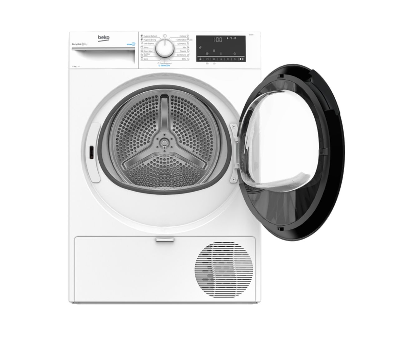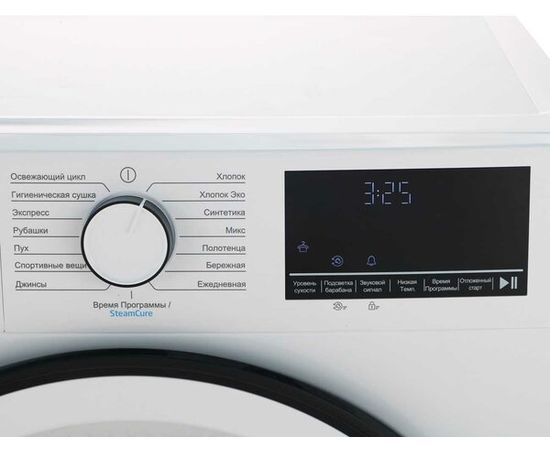 Ցուցասարքով, պտտվող մեխանիզմով և կոճակներով վահանակը երաշխավորում է Beko B3T68230-ի հարմարավետ կառավարումը։ Հետաձգված մեկնարկի ժամանակաչափը թույլ է տալիս պլանավորել չորացման մեկնարկը որոշակի ժամանակ: Ցիկլը ավարտվելուց հետո թմբուկը շարունակում է պտտվել, ինչը թույլ չի տալիս իրերը միմյանց կպչել կամ կնճռոտվել: Ներկառուցված լուսավորությունը օգնում է տեսողականորեն վերահսկել չորացման գործընթացը:
