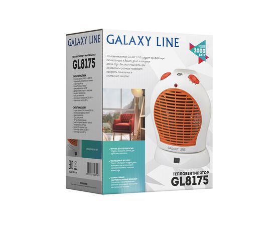 GALAXY LINE GL8175 տաքացուցիչը  օդը թորում է սենյակում պարուրաձև ջեռուցման տարրի միջոցով՝ դրանով իսկ մի քանի րոպեում բարձրացնելով սենյակի ջերմաստիճանը հարմարավետ մակարդակի: Մոդելն ունի երկաստիճան պաշտպանություն գերտաքացումից, որն անվտանգ է դարձնում սարքի շահագործումը։ Ջեռուցիչի ֆունկցիոնալությունը արտահայտվում է գործող հզորության ռեժիմների անջատիչի առկայությամբ՝ 1000/2000 Վտ: Մոդելի առանձնահատկությունը 180 աստիճանի պտտման ռեժիմն է, որը թույլ է տալիս շատ ավելի արագ տաքացնել սենյակը։ Սարքը հագեցած է «սառը օդի» գործառույթով և ջերմաստիճանի կարգավորիչով։ Օդափոխիչի էրգոնոմիկան բաղկացած է շահագործման ցուցիչի և հարմար տեղափոխման բռնակի առկայությունից: