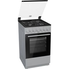 Ապրանքանիշ: Gorenje; Գույն: Արծաթագույն; Ընդհանուր բնութագիր Հայրենիք: Սլովենիա; Ընդհանուր բնութագիր Տեսակ: Ստանդարտ 60 սմ; Չափեր,գույն և քաշ Գույն : արծաթագույն; Չափեր,գույն և քաշ Քաշ: 43.4; Չափեր,գույն և քաշ Ապրանքի չափեր Լ*Բ*Խ : 50*85*60; Էներգաարդյունավետություն Էներգախնայողության դաս: A; Մակերեսը: 3 գազ + 1 էլեկտրական; Պատրաստման նյութ : Արտաքին ծածկույթ՝ էմալապատ պողպատ///Վանդակացանցի նյութ՝ էմալապատ պողպատ///Վերին կափարիչ՝ ապակե; Կառավարման համակարգ : Մեխանիկական; Էլեկտրական կայծ: Առկա է; Պաշտպանություն գազի արտահոսքից : Առկա է; Հատկություններ: Շաղախների քանակը ՝ 2; Ջեռոց Ծավալ : N[70; Ջեռոց Կոնվեկցիա : Առկա է; Ջեռոց Գրիլ : Առկա է; Ջեռոց Աշխատանքային ռեժիմներ: AquaClean- ի գոլորշու մաքրում///Slow GentleBake///Դասական ջեռուցում///Դասական ջեռուցում + օդափոխիչի շահագործում///Խոշոր գրիլ + օդափոխիչի շահագործում///Խոշոր էլեկտրական գրիլ///Հալեցում///ջեռուցում ներքեւից + օդափոխիչի աշխատանք///Փոքր գրիլ; Ջեռոց Ջեռոցի տեսակ : Էլեկտրական; Ջեռոց Հատկություններ: SilverMatte պիրոլիտիկ էմալ///Բազմաֆունկցիոնալ վառարան BigSpace - 70 լ; Էներգաարդյունավետություն Էներգիայի սպառում մեկ ցիկլի համար նորմալ ռեժիմում: 1.03կվտ/ժ; Էներգաարդյունավետություն Էներգիայի սպառում մեկ ցիկլի կոնվեկցիայի ռեժիմում: 0.8կվտ/ժ; Ջեռոց Կառավարման տեսակ: Մեխանիկական; Այրիչների տեսակ: 1- խոշոր Ø 9.9 սմ///1- տնտեսող Ø 5.4 սմ///1-ստանդարտ Ø 7.4 սմ///էլ. սալիկ- Ø 18 սմ; Ջեռոց Ջեռոցի լուսավորություն: Առկա է; Ջեռոց Թավա: էմալապատ խորը սկուտեղ///էմալապատ փոքր սկուտեղ; Ջեռոց Դռան ապակի: երկշերտ