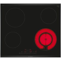 Ապրանքանիշ: Bosch; Գույն: սև; Մակերեսը: 4 էլեկտրական; Պատրաստման նյութ : Մակերեսի նյութ` ապակե-կերամիկական; Կառավարման համակարգ : Սենսորային; Հատկություններ: Մնացորդային ջերմության ցուցիչ///Վթարային անջատում; Չափեր և քաշ Չափսեր: 45 x 592 x 522 մմ; Այրիչների տեսակ: 4 Էլ․ սալիկ