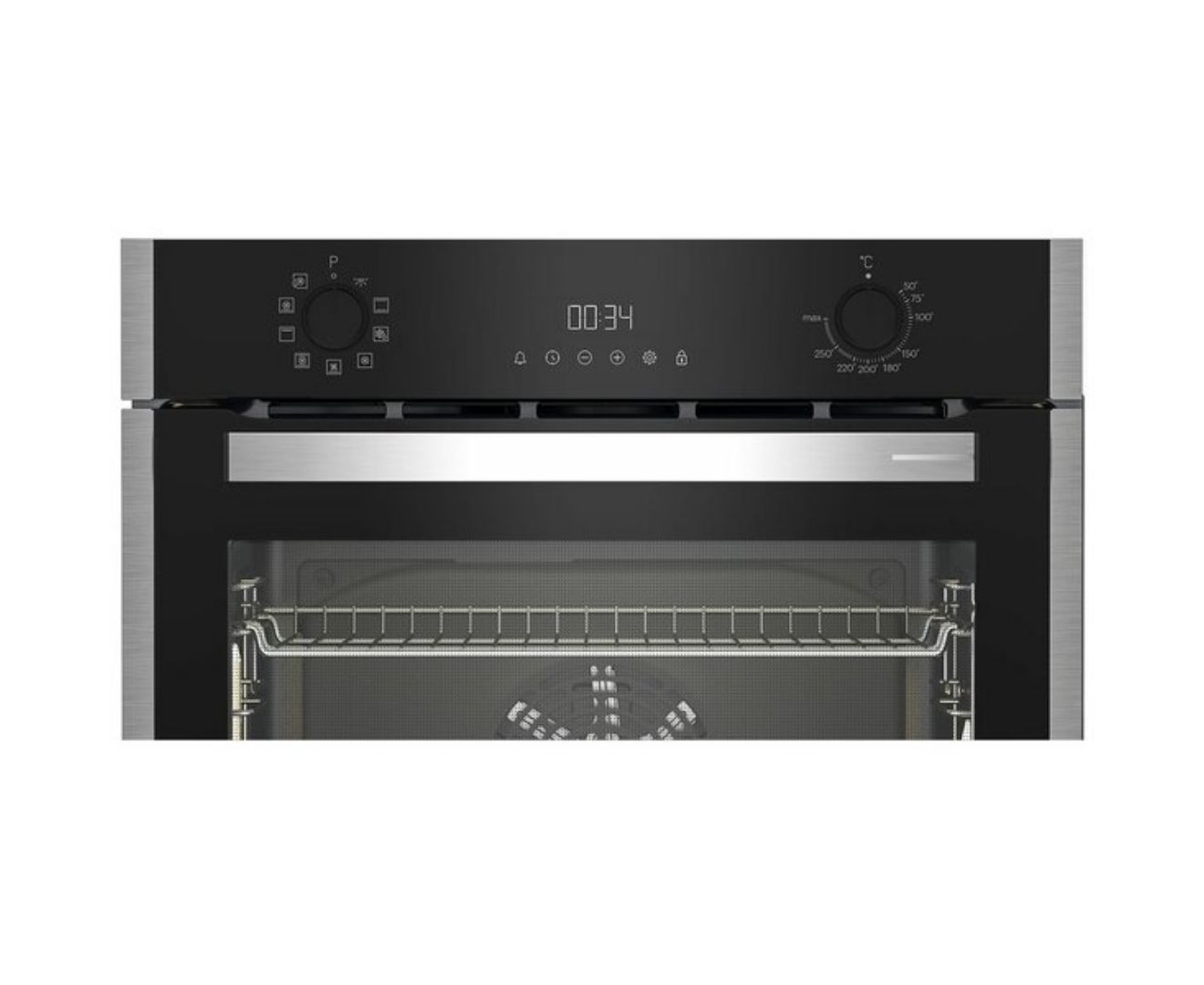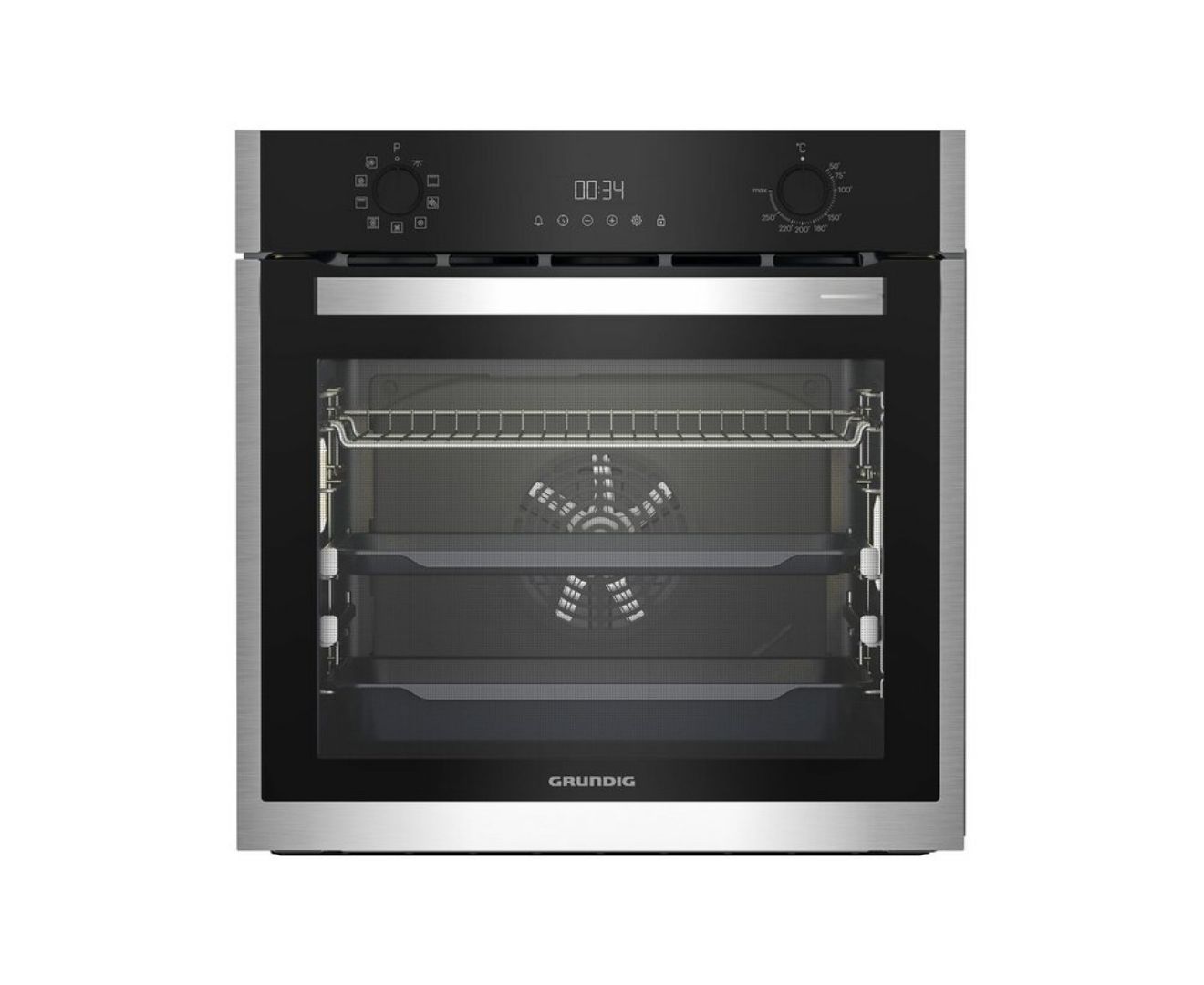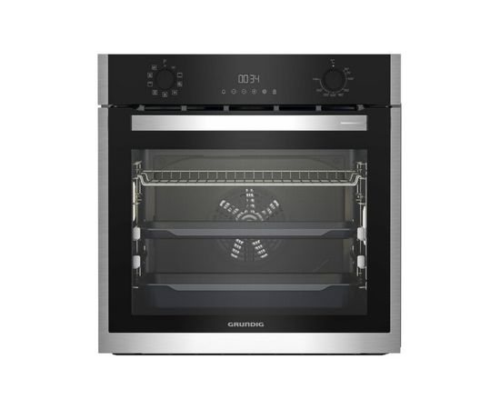 Grundig GEBM19301BC էլեկտրական վառարանը հագեցած է եռաշերտ ապակուց պատրաստված թափանցիկ դռնով և երկու մակարդակի հեռադիտակային ուղեցույցներով։ Առջևի վահանակը հագեցած է մատնահետքերի դեմ ծածկույթով։