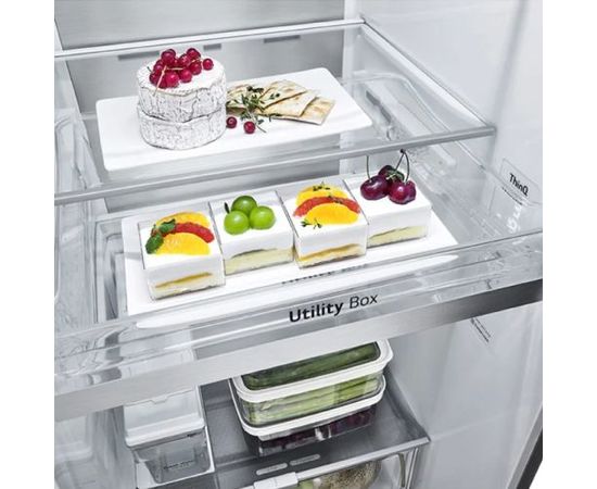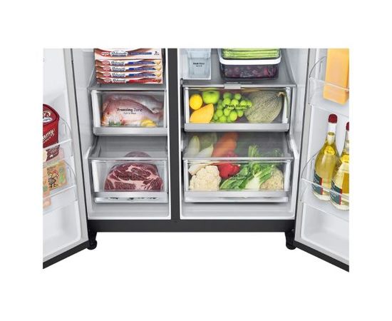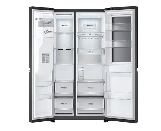 Ապրանքանիշ: LG; Գույն: սև; Ընդհանուր բնութագիր Հայրենիք: Հարավային Կորեա; Չափեր և քաշ Քաշ: 130; Չափեր և քաշ Գույն 99: սև; Ընդհանուր բնութագիր Արտադրման երկիր: Արաբական Միացյալ Էմիրություններ; Էներգաարդյունավետություն Էներգիայի սպառում: 749; Էներգաարդյունավետություն Էներգախնայողության դաս: A; Չափեր և քաշ Ապրանքի չափերը Լ*Բ*Խ : T[91.3*179*73.5; Ձայն Աղմուկի մակարդակ: 36; Շարժիչ: Ինվերտորային; Կառավարման համակարգ : Էլեկտրոնային; Սառնարանի սառեցման համակարգ: No Frost; Տարողություն Ընդհանուր օգտակար ծավալ: N[617; Տարողություն Սառնարանի օգտակար ծավալ: 412; Տարողություն Սառցարանի օգտակար ծավալ: 205; Արագ սառեցման համակարգ: Y; Սառցախցիկի սառեցման հզորություն: 13; Հատկություններ: DoorCooling+ սառեցում///Express Cool///Fresh Balancer///Hygiene FRESH+™///InstaView Door-in-Door™///LED լուսավորման համակարգ///Linear Cooling///Multi Airflow համակարգ///NatureFRESH™///Shelf - Folding Shelf///Slim Fit///Snack Corner///SpacePlus™ Ice System///UVnano™///Wi-FI///Թարմության գոտի///Պաշտպանություն երեխաներից///ջերմաստիճանի ցուցադրություն///Սմարթֆոներով կառավարում; Դռներ,դարակներ և տարաներ Արտաքին ծածկույթ : Մետաղ; Դռներ,դարակներ և տարաներ Խցիկների քանակ: 2; Դռներ,դարակներ և տարաներ Սառնարանի դարակների նյութ: Ապակի; Դռներ,դարակներ և տարաներ Սառցախցիկի դիրք : Կողային ; Դռներ,դարակներ և տարաներ Շշերի դարակ : Y; Գազի տեսակ: R600a; Դռներ,դարակներ և տարաներ Էկրան: Y; Ջրի դիսպենսեր : Y; Սառցախցիկի սառեցման համակարգ: No Frost; Սառցախցիկի սառեցման առավելագույն ջերմաստիճան: 24; Դռներ,դարակներ և տարաներ Սառույց պատրաստող սարք : Y; Դռներ,դարակներ և տարաներ Սառցախցիկի դարակների նյութ: Ապակի; Դռներ,դարակներ և տարաներ Սառցարանի դարակների քանակ: 6