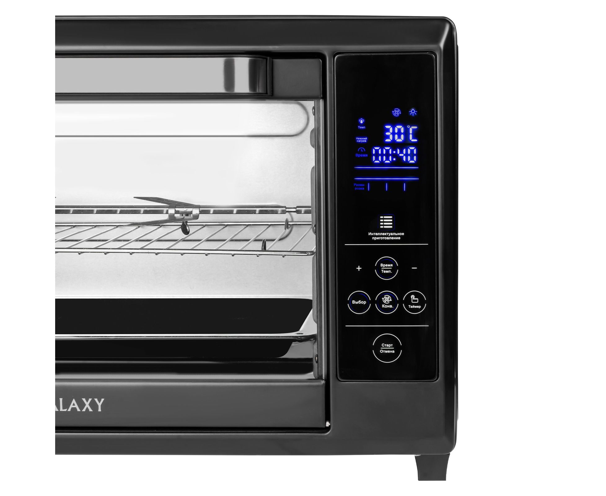 Էլեկտրոնային կառավարումը, թվային էկրանը և եփելը մինչև 24 ժամ հետաձգելու հնարավորությունը GALAXY մինի վառարանը դարձնում են ֆունկցիոնալ, բարձր տեխնոլոգիական, բայց միևնույն ժամանակ հեշտ օգտագործվող սարք:
