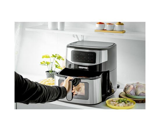 Դարձրեք ամեն օր տապակի օր: Օգտվելով Geepas թվային օդափոխիչից՝ կարող եք առողջ և համեղ ուտելիք պատրաստել առանց յուղի։ Այս օդափոխիչը պատրաստված է պրեմիում որակի նյութերից, որոնք նախագծված և արտադրված են ամենօրյա կերակուրն ավելի մատչելի դարձնելու համար: 9,2 լ թվային օդային տապակիչը բարձր տեղ է զբաղեցնում թե՛ արտաքին տեսքով, թե՛ արդյունավետությամբ և իդեալական է ամբողջ ընտանիքի համար հիանալի եփած, առողջ, ցածր յուղայնությամբ սնունդ պատրաստելու համար: Օդային տապակիչը օգտագործում է VORTEX օդային տապակման տեխնոլոգիա, որը եփում է 30%-ով ավելի արագ՝ 99%-ով քիչ յուղով և ապահովում է, որ սնունդը յուղոտ չէ: Այն օգնում է ձեզ պատրաստել համեղ կերակուրներ, որոնք դրսից փխրուն են, իսկ ներսից՝ նուրբ՝ քիչ կամ առանց ավելացված յուղի: Տապակիչը ունի սենսորային լուսադիոդային էկրան՝ ինը նախադրված պատրաստման ծրագրերով, որոնք թույլ են տալիս ժմչփը սահմանել 1-ից 60 րոպե և ջերմաստիճանի միջակայքը 50-ից 200 աստիճան Ցելսիուս, ինչպես նաև ցույց է տալիս տապակվող սննդի առաջընթացը: Նախադրված ծրագրերը ներառում են գրիլ։