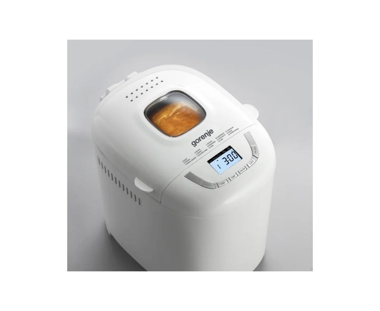 Gorenje BM 910 WII հացթուխը կոմպակտ, էրգոնոմիկ, ոճային սպիտակ մոդել է, որը կառավարվում է կոճակներով։ Սպիտակ լուսավորված LCD էկրանը հեշտացնում է ռեժիմների և գործառույթների ընտրությունը։ Համեղ, անուշաբույր տնական հաց պատրաստելու համար կարող եք օգտագործել 15 նախապես կարգավորված ծրագրերից մեկը, որը թույլ կտա ձեզ երես տալ ինքներդ ձեզ և ձեր ընտանիքին բազմազան և առողջարար թխվածքաբլիթներով, ինչպես նաև պատրաստել մուրաբա կամ տնական մածուն։ Ռեժիմների շարքում կան այնպիսիք, որոնք կօգնեն ձեզ թխել սովորական հաց, ֆրանսիական, ամբողջական հացահատիկային կամ գլյուտեն չպարունակող խմորեղեն, տորթ, խմորեղեն կամ տաքացնել սենդվիչ։