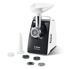 Ապրանքանիշ: Bosch; Գույն: սև/սպիտակ; Ընդհանուր բնութագիր Հայրենիք: Գերմանիա; Չափեր,գույն և քաշ Գույն : սև/սպիտակ; Չափեր,գույն և քաշ Քաշ: 3.7; Չափեր,գույն և քաշ Ապրանքի չափեր Լ*Բ*Խ : 16*25*23; Հզորություն: 1600; Արտադրողականություն : 1.9; Իրանի նյութ : Պլաստիկ; Սկուտեղի նյութ: Պլաստիկ; Անվանական հզորություն: 500; Գլխիկներ Սկավառակներ ցանցեր : Ներառված 2 հատ, անցքի տրամագիծը 4 մմ, 8 մմ; Դանակի նյութ: Չժանգոտվող պողպատ; Գլխիկներ Գլխիկներ : 2 սկավառակ աղացած մսի համար///թխուկների համար///Մակարոնեղենի 2 սկավառակ///տնական երշիկների համար; Հետադարձ պտույտ Reverse : Առկա է