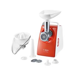Ապրանքանիշ: Bosch; Գույն: սպիտակ/կարմիր; Ընդհանուր բնութագիր Հայրենիք: Գերմանիա; Ընդհանուր բնութագիր Արտադրման երկիր: Լեհաստան; Չափեր,գույն և քաշ Գույն : սպիտակ/կարմիր; Չափեր,գույն և քաշ Լարի երկարություն: 1,2; Չափեր,գույն և քաշ Քաշ: 3,98; Չափեր,գույն և քաշ Ապրանքի չափեր Լ*Բ*Խ : 16*25*23; Հզորություն: 1600; Արտադրողականություն : 1,9; Իրանի նյութ : Պլաստիկ; Սկուտեղի նյութ: Պլաստիկ; Առավելագույն շարունակական աշխատանքային ժամանակ: 10; Անվանական հզորություն: 500; Գլխիկներ Սկավառակներ ցանցեր : 3; Դանակի նյութ: Չժանգոտվող պողպատ; Գլխիկներ Գլխիկներ : Երշիկեղենի պատրամստման գլխիկ///Հյութաքամիչ հատապտուղների, փափուկ մրգերի և բանջարեղենի հյութացման համար///Քաբաբի պատրաստման գլխիկ; Հետադարձ պտույտ Reverse : Առկա է; Շարժիչի գերբեռնվածության պաշտպանություն: Առկա է