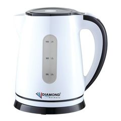 Ապրանքանիշ: Diamond; Գույն: սպիտակ/սև; Ընդհանուր բնութագիր Հայրենիք: Գերմանիա; Ընդհանուր բնութագիր Արտադրման երկիր: Չինաստան; Չափեր,գույն և քաշ Գույն : սպիտակ; Հզորություն : 2200; Տարողություն: 1.7; Արտաքին ծածկույթ : Պլաստմասե; Կառավարման տեսակ: Մեխանիկական; Հատկություններ: 360 աստիճանի պտտվող ստենդ///Առկա է լարի պահման խցիկ///Ավտոմատ անջատում///Ավտոմատ անջատում եռալիս///Ավտոմատ անջատում ջրի բացակայության դեպքում///Բազմաստիճան անվտանգության համակարգ///Թեյնիկի ծորակի հիմքում առկա է շարժական ֆիլտր; Ջրի մակարդակի ցուցիչ : Առկա է; Ջեռուցման տարրը: Պարուրաձև տեսքով. թաքնված է մետաղական սկավառակի տակ; Led լույս : Առկա է
