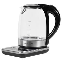 Ապրանքանիշ: GALAXY LINE; Գույն: սև/թափանցիկ; Ընդհանուր բնութագիր Հայրենիք: Ռուսաստան; Չափեր,գույն և քաշ Գույն : սև/թափանցիկ; Չափեր,գույն և քաշ Քաշ: 1,26; Չափեր,գույն և քաշ Ապրանքի չափեր Լ*Բ*Խ : 25,8*28,2*20,3; Հզորություն : 2200; Տարողություն: 1,8; Արտաքին ծածկույթ : Ապակի; Կառավարման տեսակ: Էլեկտրոնային; Հատկություններ: Առկա է լարի պահման խցիկ///Ավտոմատ անջատում եռալիս///Ավտոմատ անջատում ջրի բացակայության դեպքում///Չժանգոտվող պողպատից ֆիլտր 18/10///Ջեռուցման ջերմաստիճանի կարգավորիչ 40-100°С ///ջերմության պահպանում; Ջրի մակարդակի ցուցիչ : Առկա է; Ջեռուցման տարրը: թաքնված; Led լույս : Առկա է; Մարմնի կազմվածքը: ապակի; Արտիկուլա : гл0556