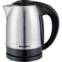 Ապրանքանիշ: KRAFT; Գույն: չժանգոտվող մետաղ; Ընդհանուր բնութագիր Հայրենիք: Չինաստան; Ընդհանուր բնութագիր Արտադրման երկիր: Չինաստան; Չափեր,գույն և քաշ Գույն : չժանգոտվող մետաղ; Հզորություն : 2200; Տարողություն: 1.7; Արտաքին ծածկույթ : Չժանգոտվող պողպատ; Կառավարման տեսակ: Մեխանիկական; Հատկություններ: 360 աստիճանի պտտվող ստենդ///Առկա է լարի պահման խցիկ///Ավտոմատ անջատում///Ավտոմատ անջատում եռալիս///Ավտոմատ անջատում ջրի բացակայության դեպքում///Բազմաստիճան անվտանգության համակարգ///Թեյնիկի ծորակի հիմքում առկա է շարժական ֆիլտր; Ջրի մակարդակի ցուցիչ : Առկա է; Ջեռուցման տարրը: Պարուրաձև տեսքով. թաքնված է մետաղական սկավառակի տակ; Led լույս : Առկա է