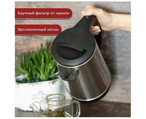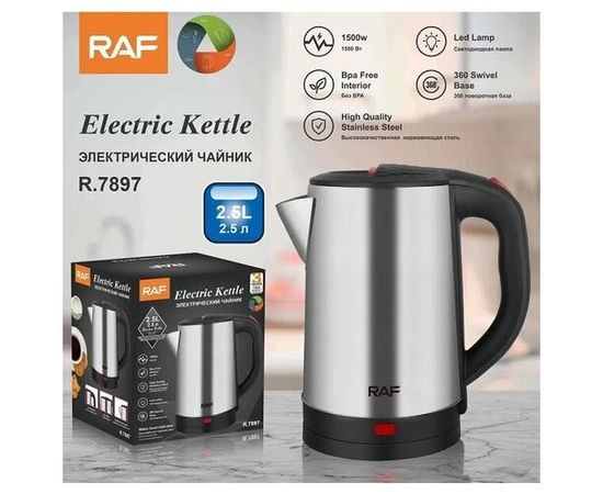 RAF Electric Metal Tettle-ը կոմպակտ, օգտակար սարք է՝ չժանգոտվող պողպատից կորպուսով: Ի տարբերություն պլաստիկի, չժանգոտվող պողպատը նույնիսկ տաքացնելիս վնասակար նյութեր չի արտանետում ջրի մեջ և տալիս է տհաճ հոտ։ Կենցաղային չժանգոտվող պողպատը դիմացկուն է, էկոլոգիապես մաքուր և անվտանգ օգտագործման համար: Մետաղական էլեկտրական թեյնիկը, ի տարբերություն այլ մոդելների, արագ տաքանում է և երկար պահում ջերմությունը։ Մեր մետաղական էլեկտրական թեյնիկն ունի 2000Վտ հզորություն և 2,3լ ծավալ։ Նման ծավալը թույլ կտա թեյնիկի մեկ եռումից հետո թեյ խմել ամբողջ ընտանիքի կամ ընկերների մեծ խմբի համար։ Միևնույն ժամանակ, թեյնիկը կոմպակտ է, էրգոնոմիկ դիզայնով։