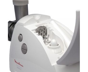 Moulinex ընկերության նորաձև և կոմպակտ մսաղացը կարող է դառնալ ցանկացած խոհանոցի բազմաֆունկցիոնալ օգնական: Դրա մարմինը պատրաստված է մոխրագույն և սպիտակ փայլատ պլաստիկից: Սարքի հետեւի մասում կա պարագաներ պահելու հատուկ խցիկ: