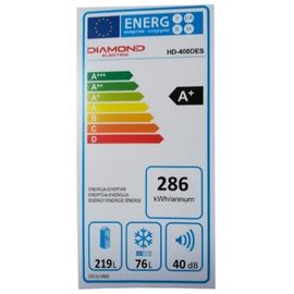 ԱպրանքանիշDiamond Ընդհանուր օգտակար ծավալ409 լիտր Արտաքին ծածկույթ չժանգոտվող մետաղ Էներգախնայողության դասA+++