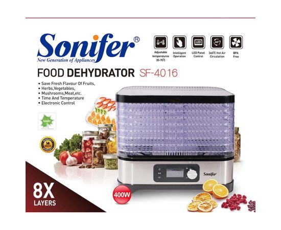 Ապրանքանիշ: SONIFER; Գույն: Սպիտակ; Ընդհանուր բնութագիր Հայրենիք: Չինաստան; Ընդհանուր բնութագիր Արտադրման երկիր: Չինաստան; Չափեր,գույն և քաշ Գույն : սպիտակ; Չափեր,գույն և քաշ Լարի երկարություն: 1; Հզորություն: 400; Կառավորման համակարգ: Էլեկտրական; Պատրաստման նյութ: Թափանցիկ պլաստիկ; Տարաների քանակ : 8; Ջերմաստիճան : 35-70 ; Ժամանակի կարգավորում: 1-24