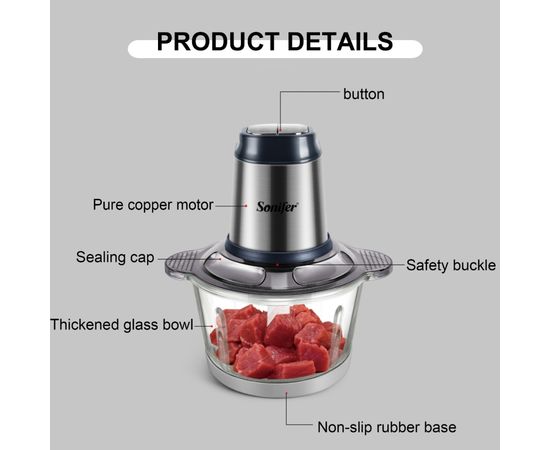 Ապրանքանիշ: SONIFER; Գույն: չժանգոտվող մետաղ; Ընդհանուր բնութագիր Հայրենիք: Չինաստան; Ընդհանուր բնութագիր Արտադրման երկիր: Չինաստան; Չափեր,գույն և քաշ Գույն : չժանգոտվող մետաղ; Չափեր,գույն և քաշ Լարի երկարություն: 1.2; Չափեր,գույն և քաշ Ապրանքի չափեր Լ*Բ*Խ : 15*28*24; Հզորություն: 300; Տարայի տարողություն : 1.8; Իրանի նյութ: Ապակի///Չժանգոտվող պողպատ