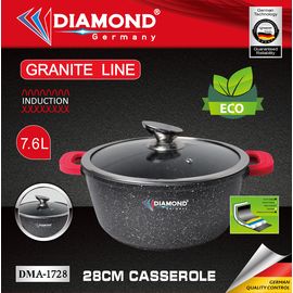 ԱպրանքանիշDiamond Պատրաստման նյութ Ալյումինե Ներքին ծածկույթ Գրանիտե ոչ կպչուն ծածկույթ Կափարիչ Առկա է Տրամագիծ 28 սմ