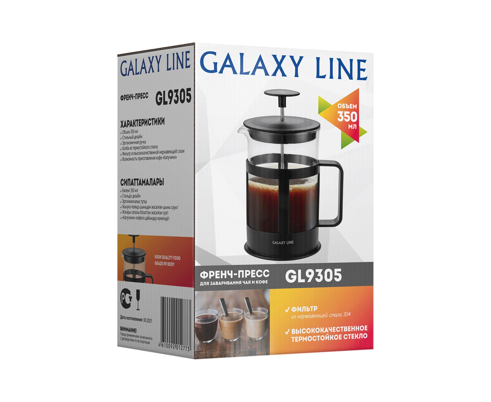 GALAXY LINE GL9305 Ֆրենչ-պրեսսը նախատեսված է թեյ և սուրճ պատրաստելու համար։ GALAXY LINE ֆրանսիական զտիչով ստացված սուրճի համը, բույրը և գույնը տարբերվում է սուրճի մեքենայի մեջ պատրաստված կամ սրճեփի մեջ եփած սուրճի համից: Սեղմելուց և զտելուց հետո այն ունի ավելի մեղմ և հարուստ համ, ավելի բաց և բնական հոտ։ Այսպես պատրաստված ըմպելիքի մեջ ավելի օգտակար և անուշաբույր նյութեր են պահպանվում։ Այս մոդելն ունի կոմպակտ չափ և 350 մլ ծավալ։ Ֆրանսիական զտիչը պատրաստված է բարձրորակ սննդային պլաստիկից՝ ջերմակայուն ապակե կոլբայով: Այն էկոլոգիապես մաքուր է, հրակայուն, կարող է երկար շփվել ըմպելիքների հետ՝ առանց դրանց կողմնակի համ հաղորդելու։ Այս մոդելի լրացուցիչ առավելությունը չժանգոտվող պողպատից 304 ֆիլտրի առկայությունն է։Հատուկ ֆիլտրի և զտիչի շնորհիվ կարող եք օգտագործել ցանկացած տեսակի և չափի թեյի տերևներ, ինչպես նաև պատրաստել կապուչինո, արևելյան սուրճ, էսպրեսսո՝ ինչպես ցանկանում եք։ GL9305 ֆրանսիական զտիչն ունի էրգոնոմիկ բռնակ և ոճային ժամանակակից դիզայն, ուստի այն կդառնա ցանկացած ինտերիերի զարդարանք: GALAXY LINE տաք ըմպելիքների պատրաստման սարքավորումները նախատեսված են ձեր տանը հարմարավետության մթնոլորտ ստեղծելու համար: